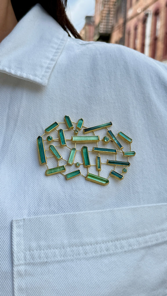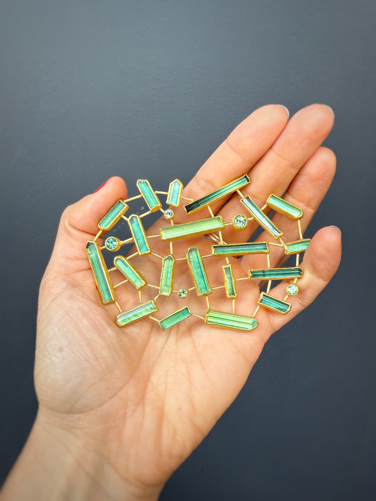 Recycled 18-karat yellow gold, recycled 22-karat yellow gold bezels, green tourmaline (60 total cts)