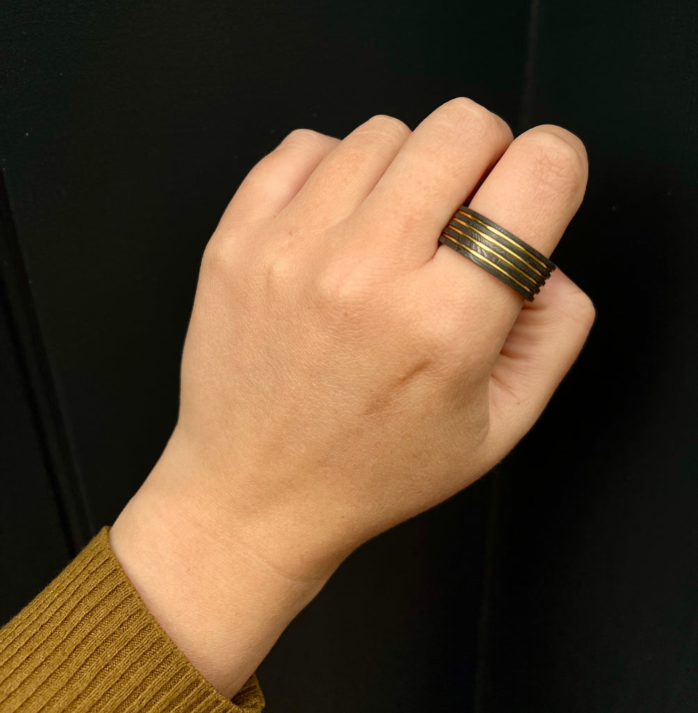 Chris Ploof, Damascus Steel & Gold Erebus Ring, Supernova Pattern