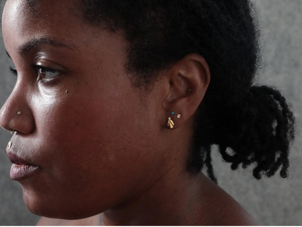 22-karat gold over brass, sterling silver posts, cast lavender flowers