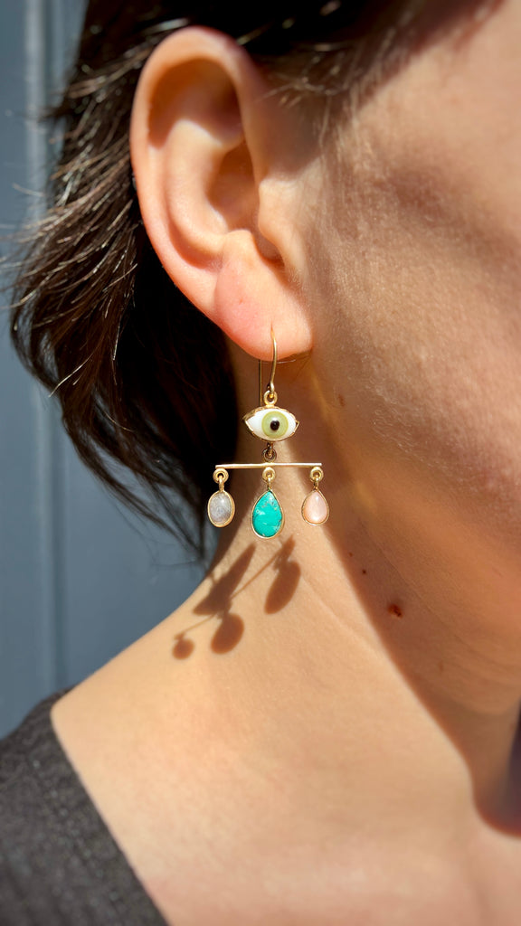 18-karat vermeil, glass, labradorite, aventurine, moonstone, prehnite, rainbow moonstone, turquoise