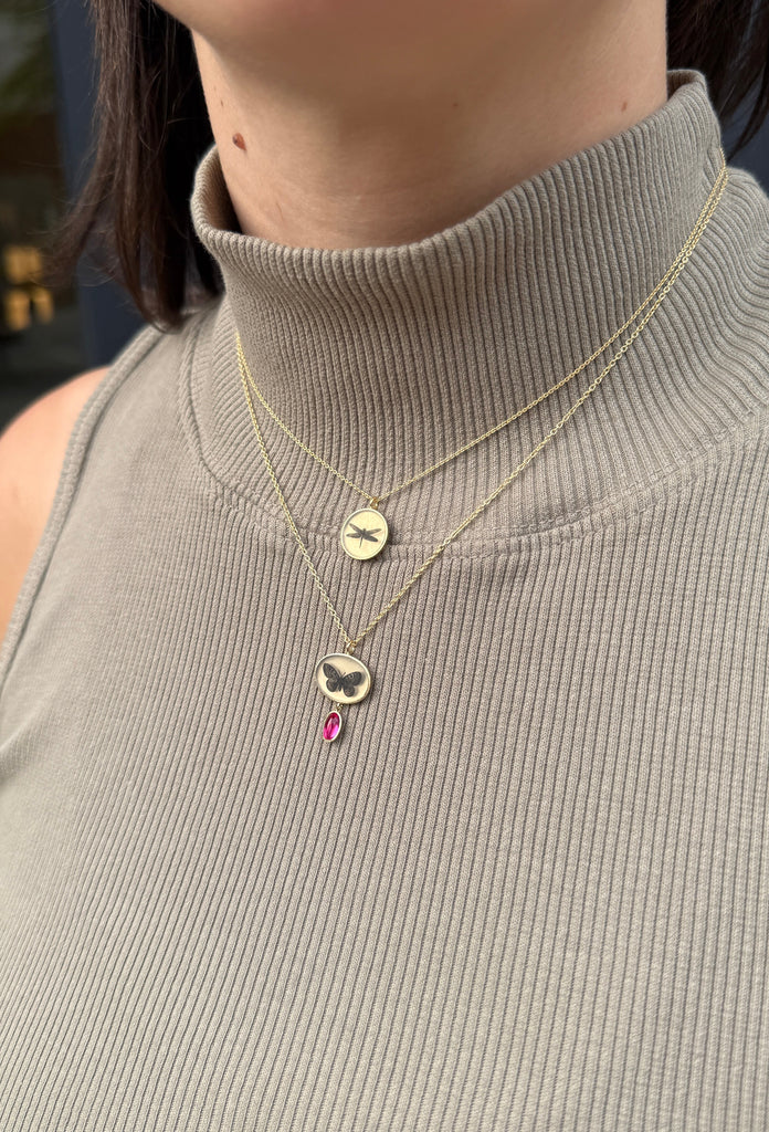 Anzu Jewelry, Butterfly and Ruby Droplet Necklace