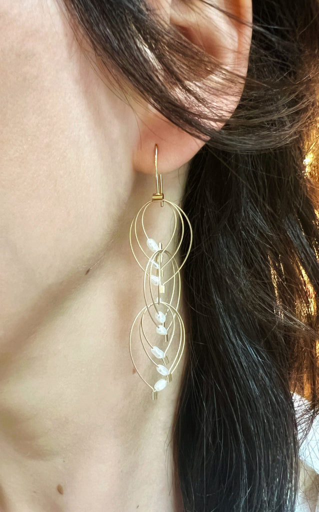 Meghan Patrice Riley, Feather Teardrops Hook Earrings with Pearls (Mini)