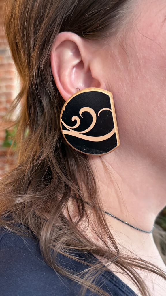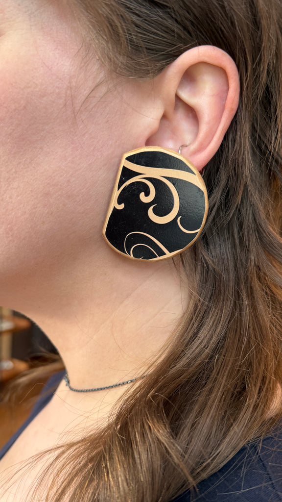 Each earring, 2 x 1 3/4 x 3/8 inch