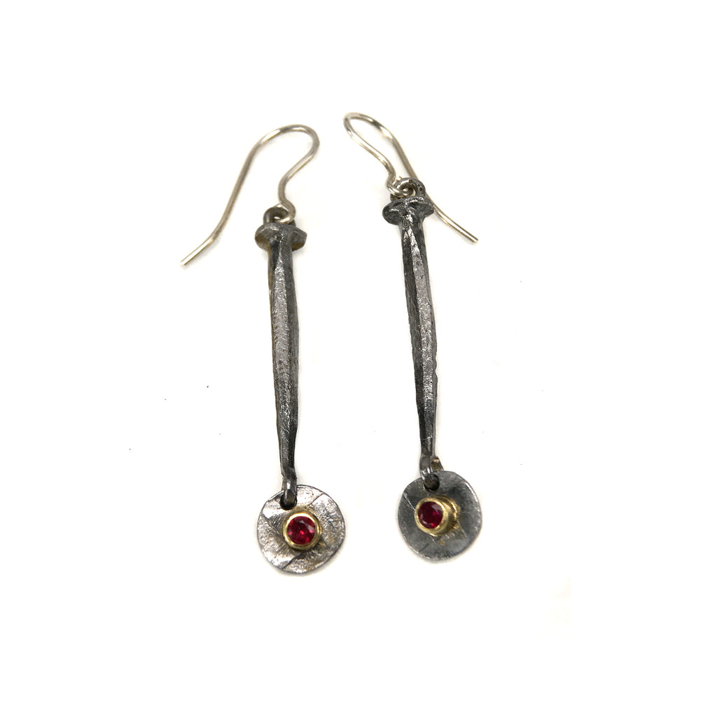 Rob Jackson, Nail Earrings with Hanging Rubies