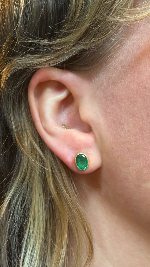 22-karat yellow gold, 18-karat gold posts, emeralds (2.6 total carats)