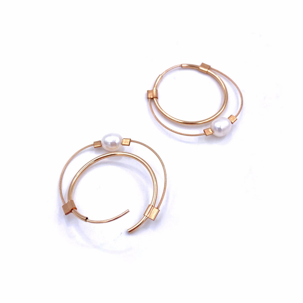 Meghan Patrice Riley, Stone Hoops, Small, Gold/Pearl