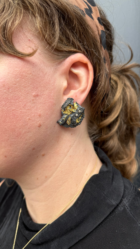 18-karat yellow gold, blackened sterling silver, diamonds (2mm)