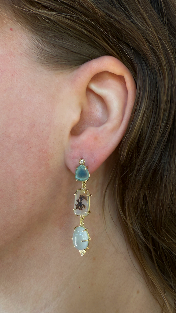 Joanna Gollberg, Dangle Aquamarine and Agate Earrings