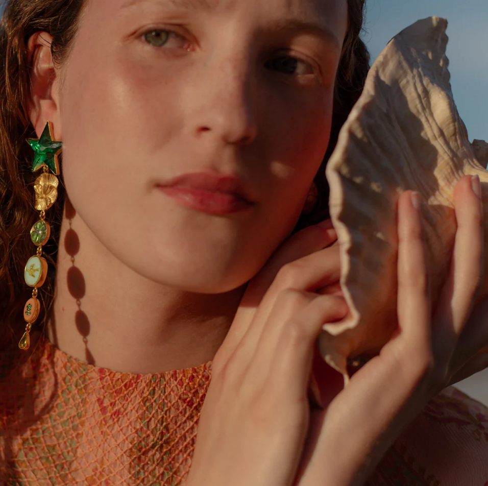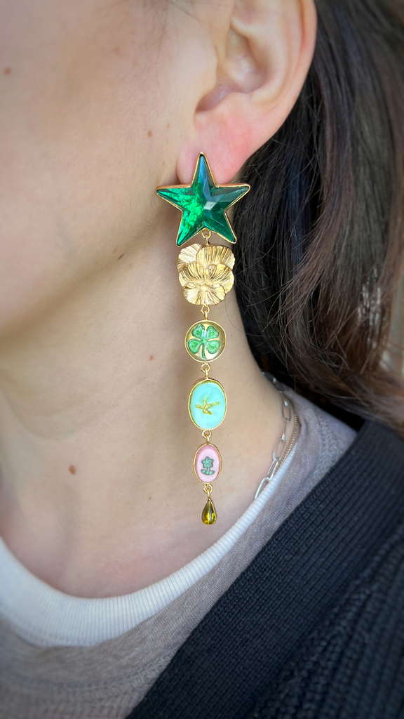 Grainne Morton, Green Heart and Star Earrings