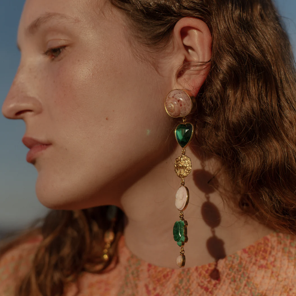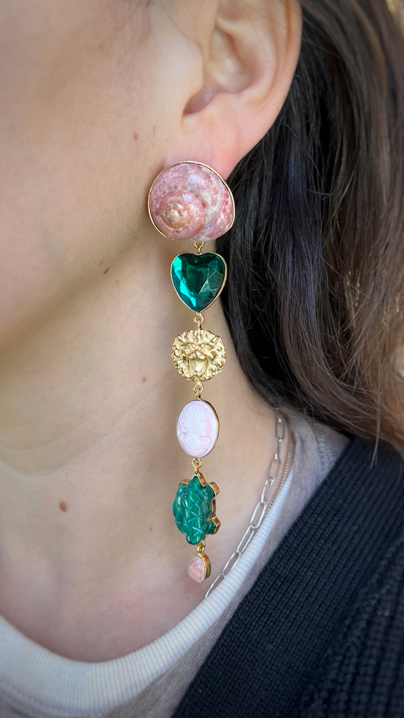 18k vermeil, cameo, malachite, shell, vintage glass, vintage rhinestone