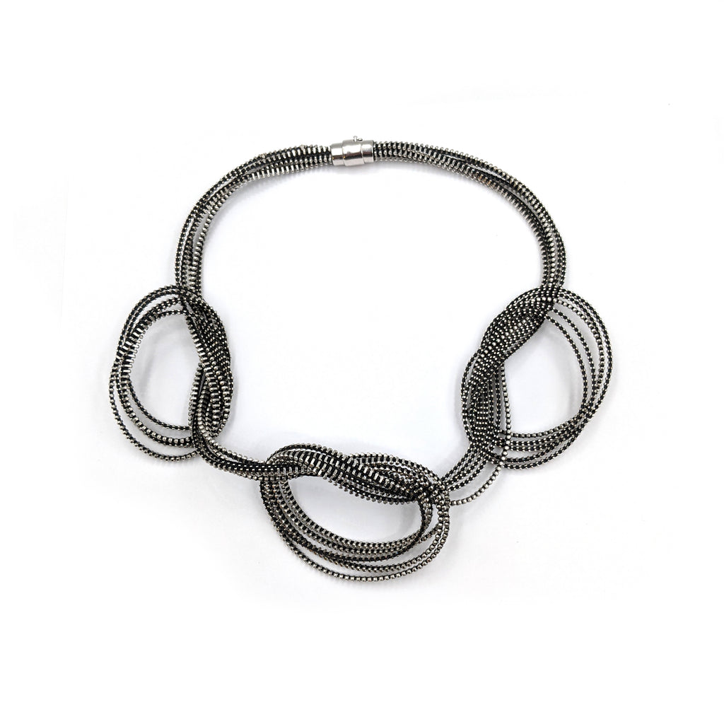 Zippers, cut away black with silver, locking magnetic clasp