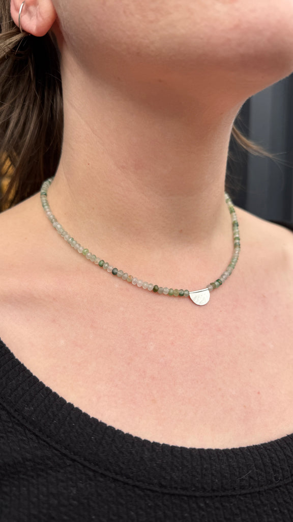 Aventurine beads, sterling silver, nylon coated steel