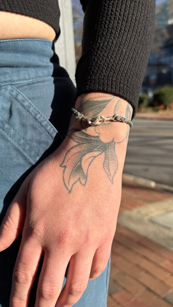 Cat Bates, Sister Clasp Bracelet, Silver, Grey Cord