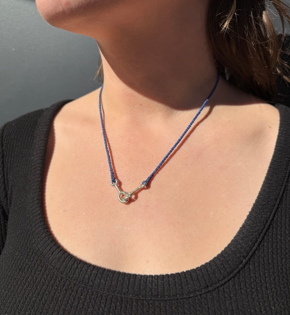 Sterling silver, royal blue nylon cord
