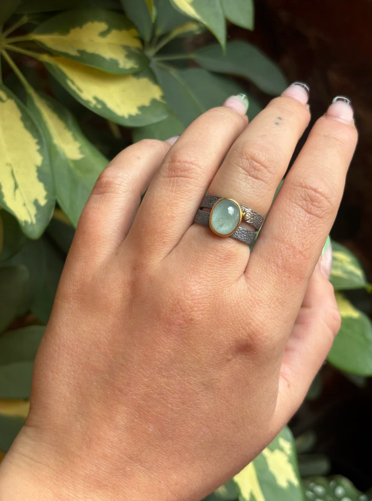 Joanna Gollberg, Aquamarine Crossover Ring with Diamond