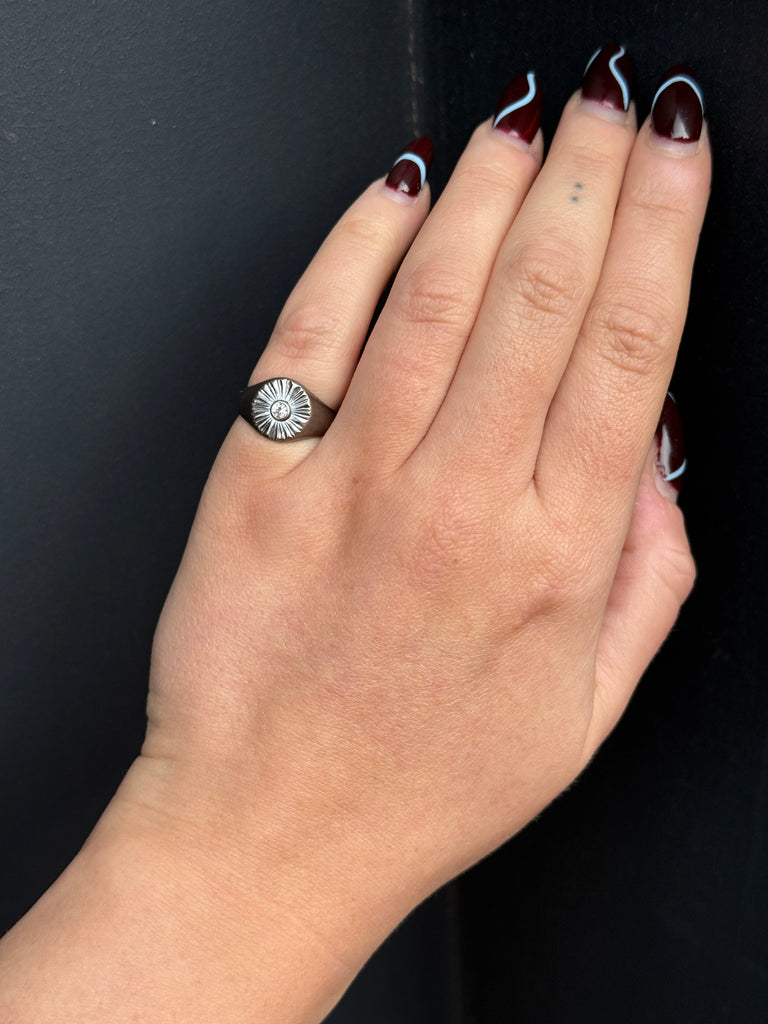 Gena Murfin, Engraved Burst Signet Ring, White Topaz