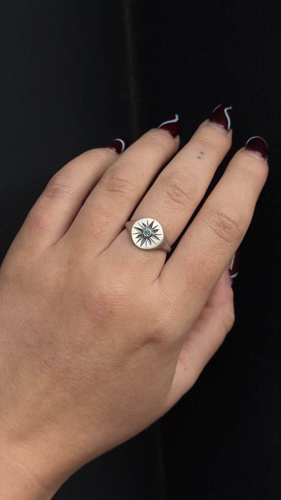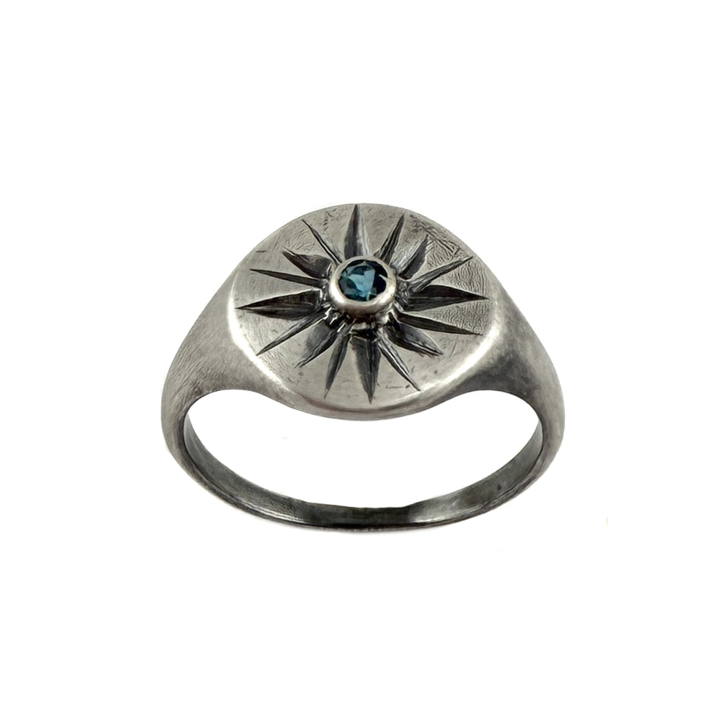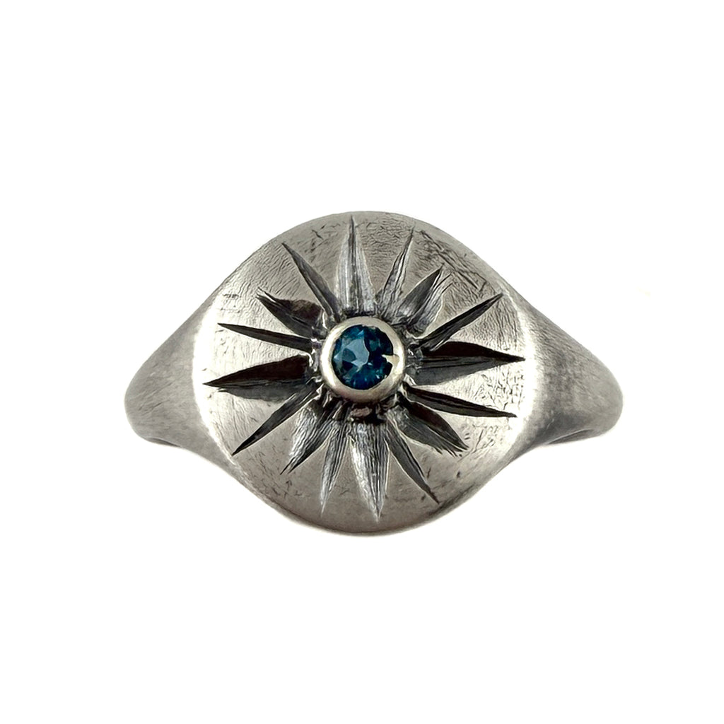 Gena Murfin, Engraved Star Signet, London Blue Topaz