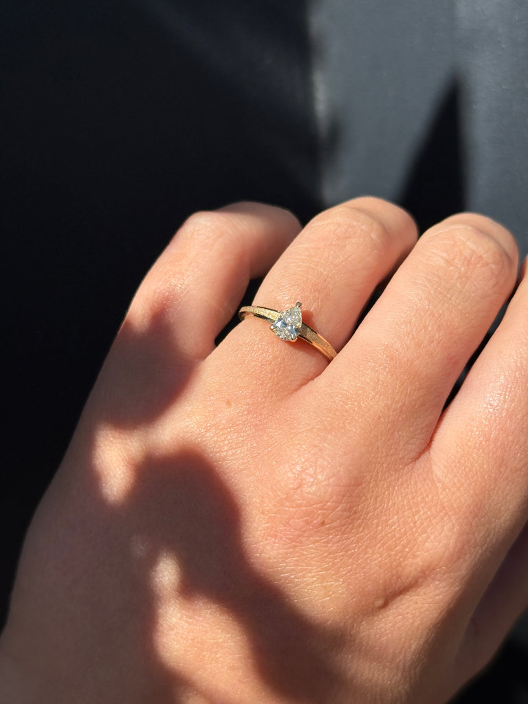 14-karat yellow gold, .46 ct L/SI2 pear shaped post consumer diamond