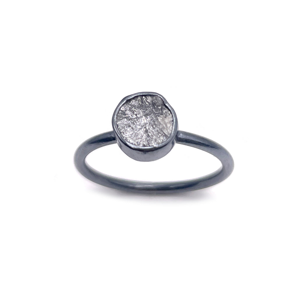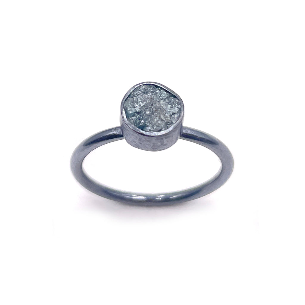 Oxidized sterling silver, rough diamond