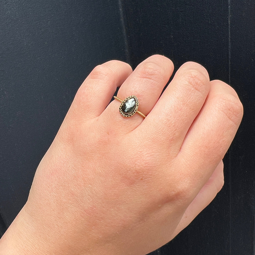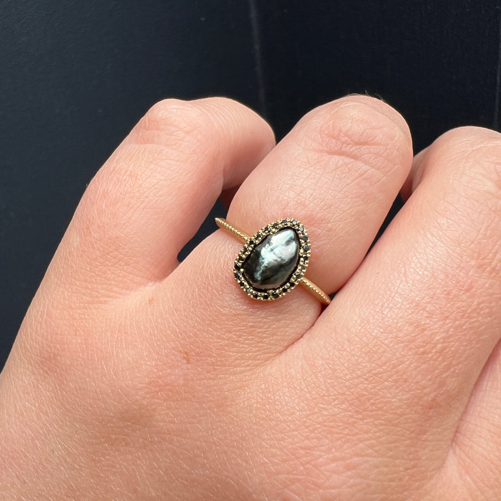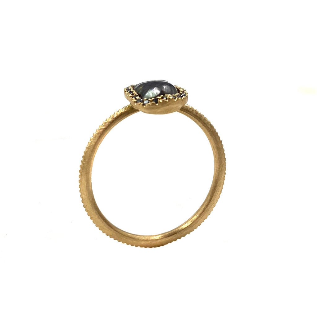 18-karat yellow gold, black diamonds (0.07ct), and South Sea keshi pearl