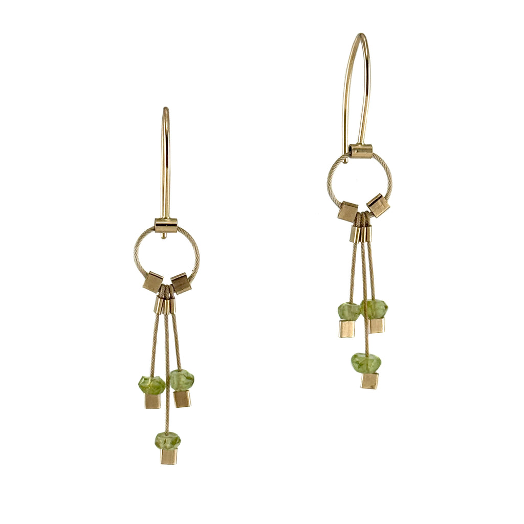 Nylon-coated steel cable, gold-fill, sterling silver, peridot