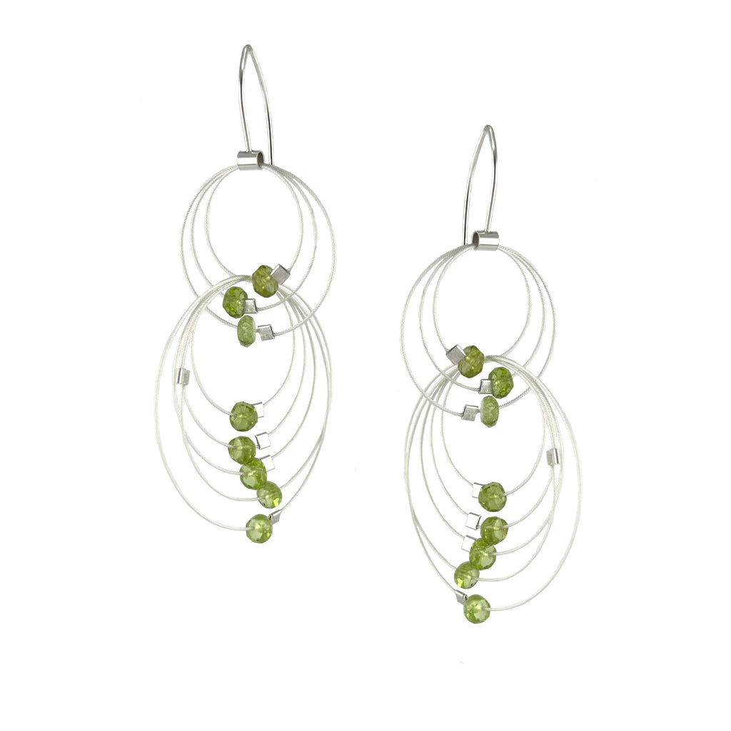 Nylon-coated steel wire, sterling silver, peridot