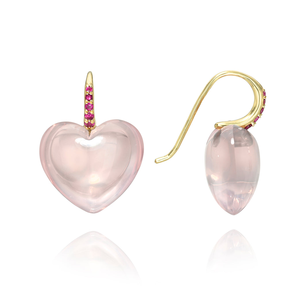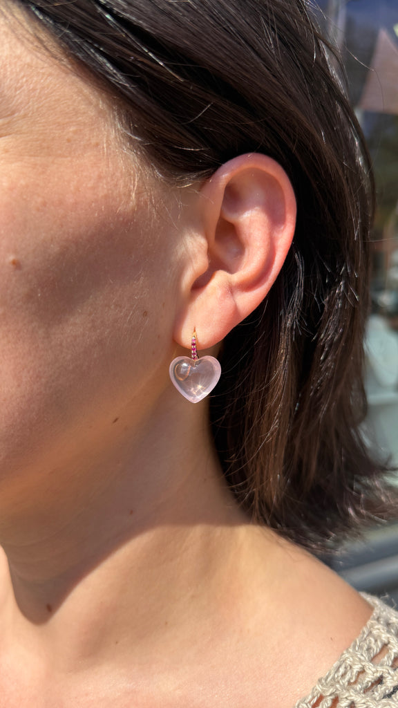 Heart Dollop Earrings, Rose Quartz