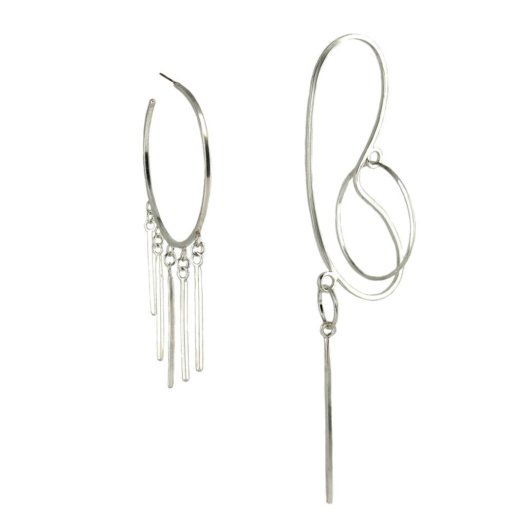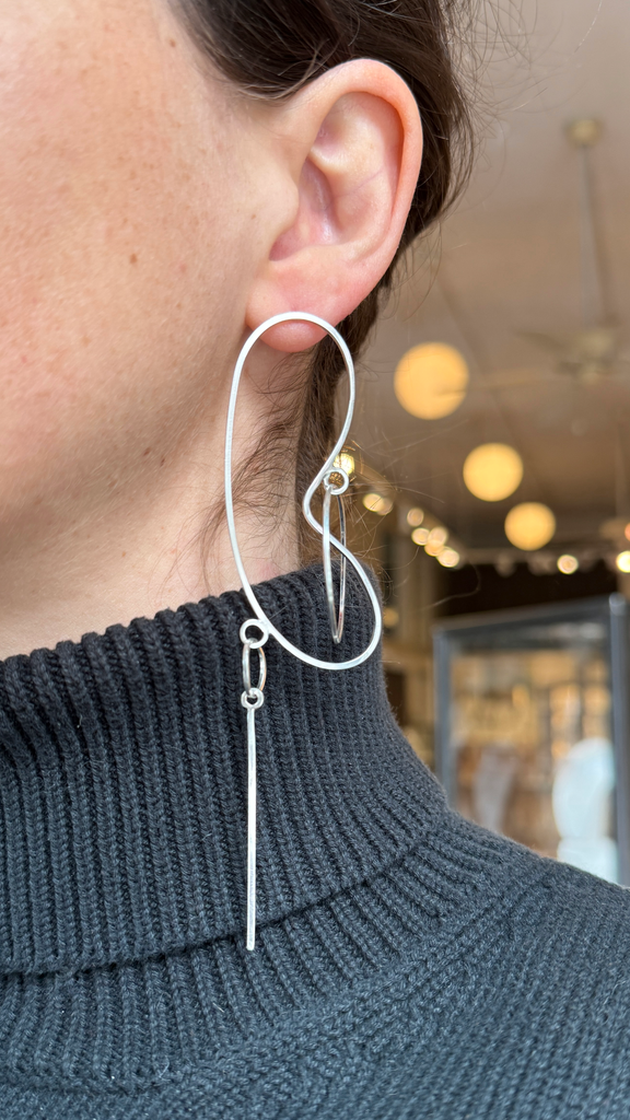 Line Drawing Earrings, Silver