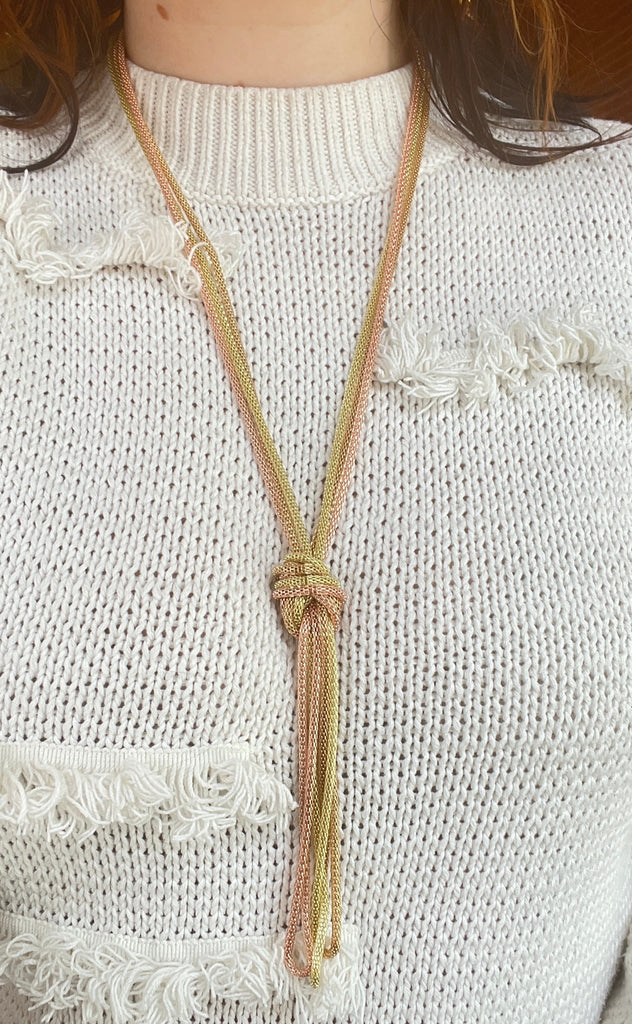 Watch a tutorial on how to create a slip knot with your mesh necklace.