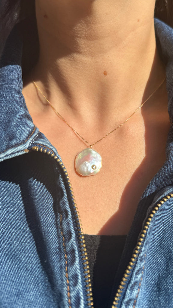 18-karat yellow gold, fresh water keshi pearl, diamond (0.024ct)