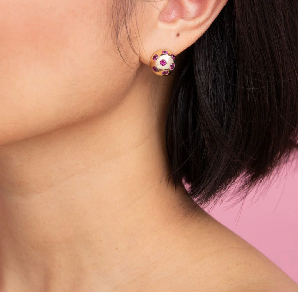 Rachel Quinn, Rhodolite Polka Dot Ball Button Earrings