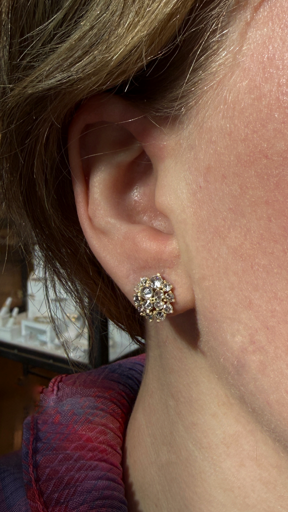 18-karat yellow gold, 28 inverted white diamonds (2.42ctw), 18-karat yellow gold posts and backs