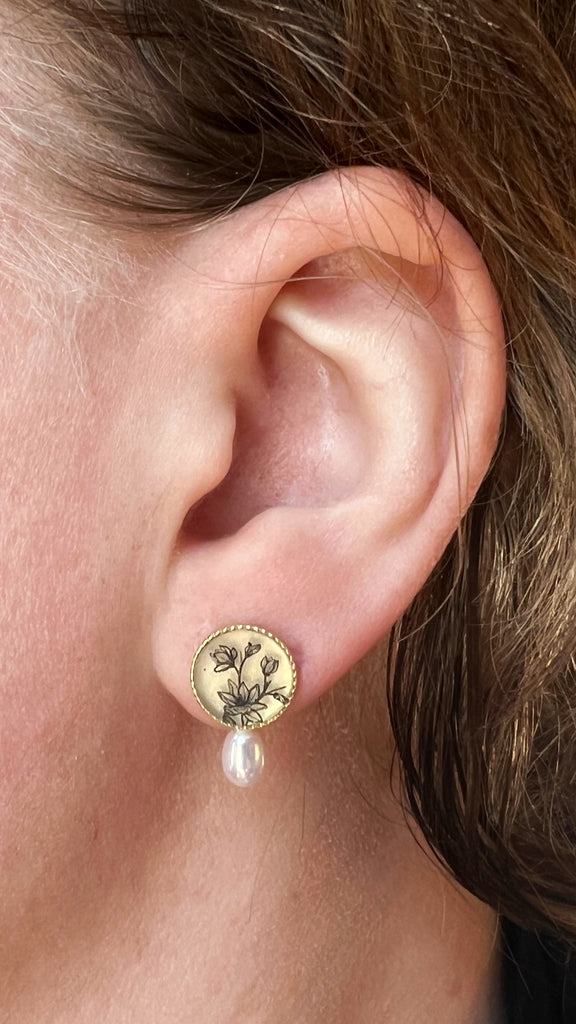 Anzu Jewelry, Round Pearlstuds, Magnolia