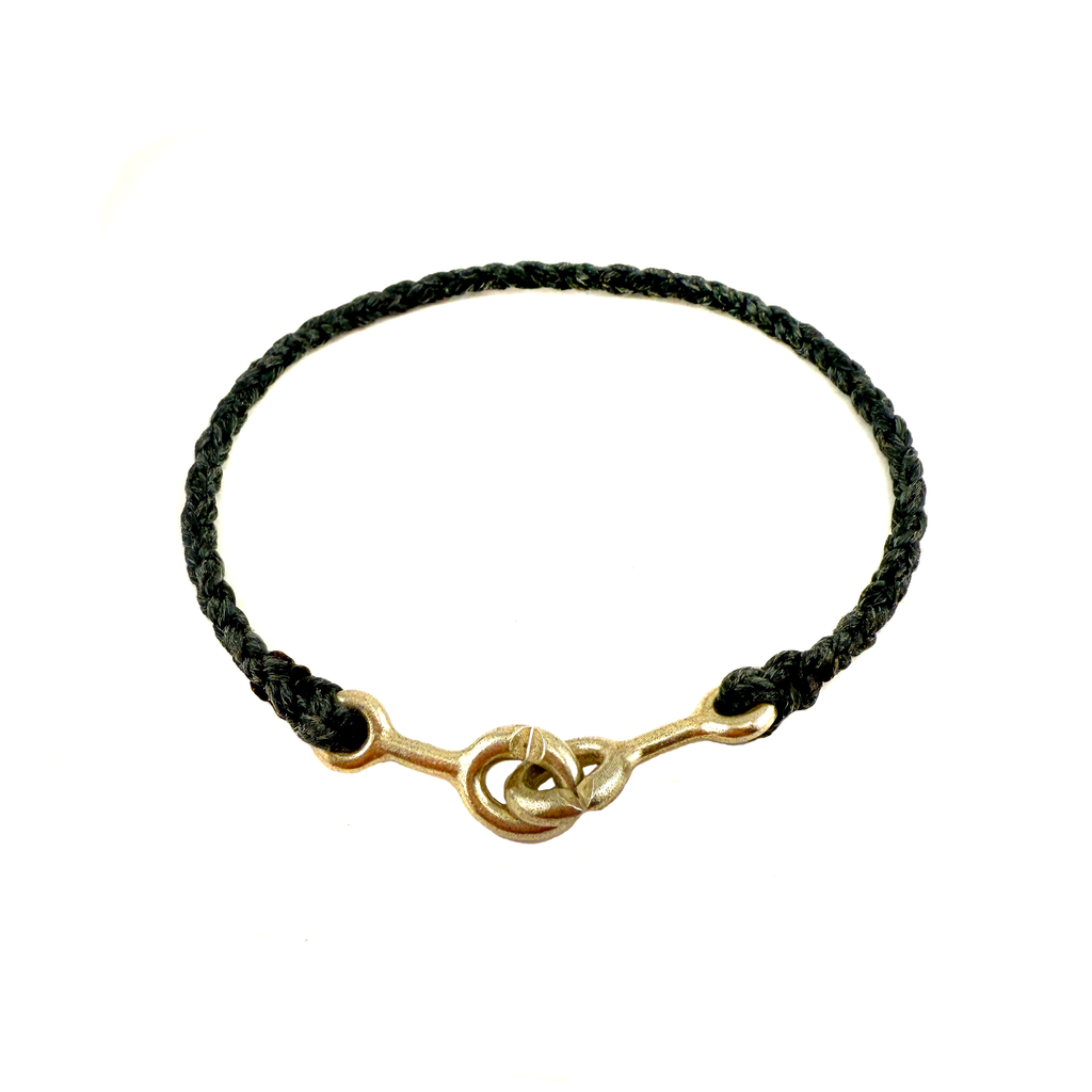 Cat Bates, Sister Clasp Bracelet, Brass, Black Cord